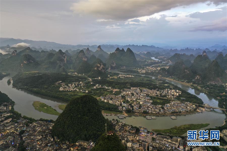 7月4日拍攝的廣西陽朔縣景色(無人機(jī)照片)。時(shí)值夏日,廣西桂林市陽朔縣景色宜人,青山綠草、藍(lán)天白云構(gòu)成一幅幅美麗的山水畫卷。新華社記者曹祎銘攝