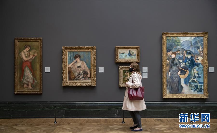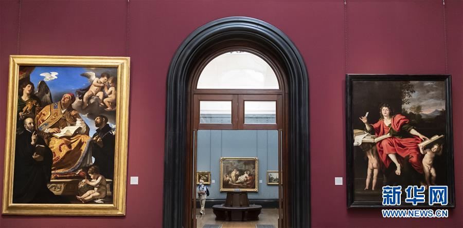7月4日,參觀者佩戴口罩在英國(guó)國(guó)家美術(shù)館的媒體開(kāi)放日上參觀。新華社記者韓巖攝