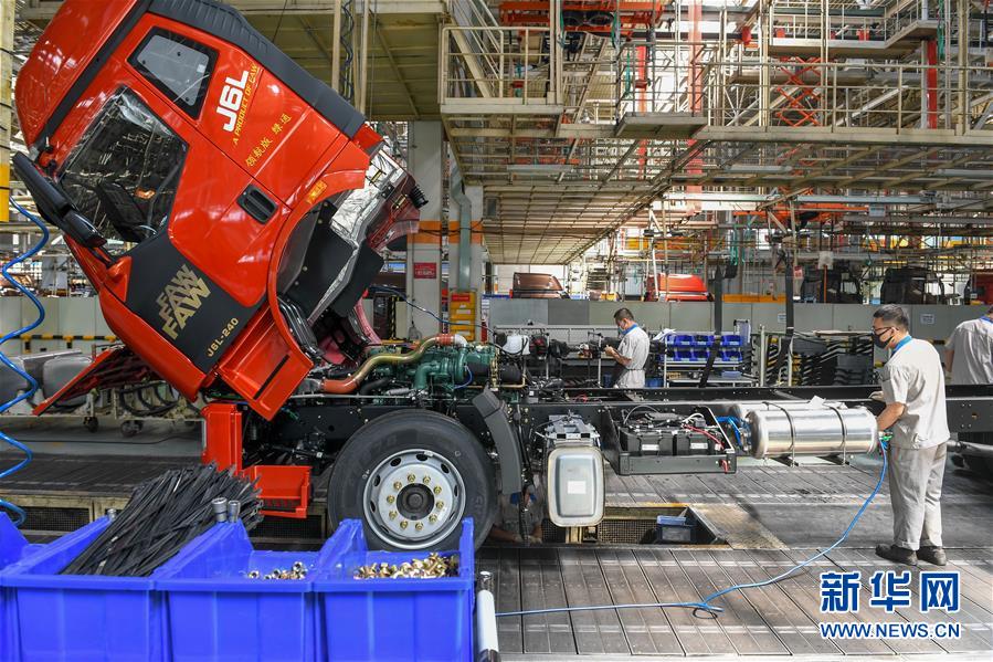 在位于長春市的一汽解放總裝車間,工人在裝配車輛(6月19日攝)。中國第一汽車集團(tuán)披露,截至6月30日,集團(tuán)上半年共計(jì)生產(chǎn)整車162.23萬輛,同比增長1.5%;銷售整車163.09萬輛,同比增長2.3%。新華社記者張楠攝