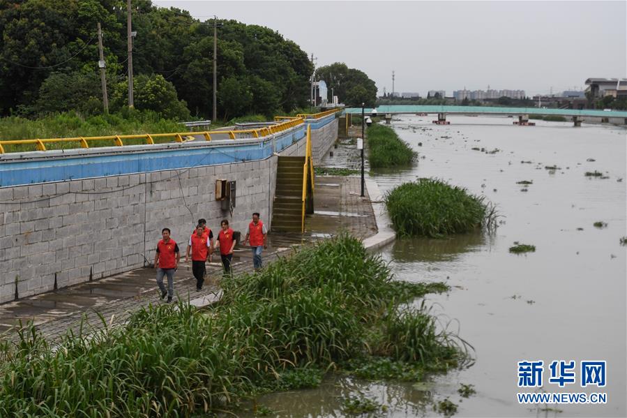 7月7日,吳興高新區(qū)幻溇村黨員志愿者在巡查河道。近日,位于浙江北部的湖州市遭遇多輪降雨,東部平原河網(wǎng)普遍超警戒水位,水庫(kù)山塘高位運(yùn)行。7月5日12時(shí)30分,湖州市人民政府防汛防旱指揮部將防汛應(yīng)急響應(yīng)提升至Ⅲ級(jí),要求各地密切監(jiān)測(cè)汛情,切實(shí)做好各項(xiàng)防范工作,確保安全度汛。新華社記者黃宗治攝