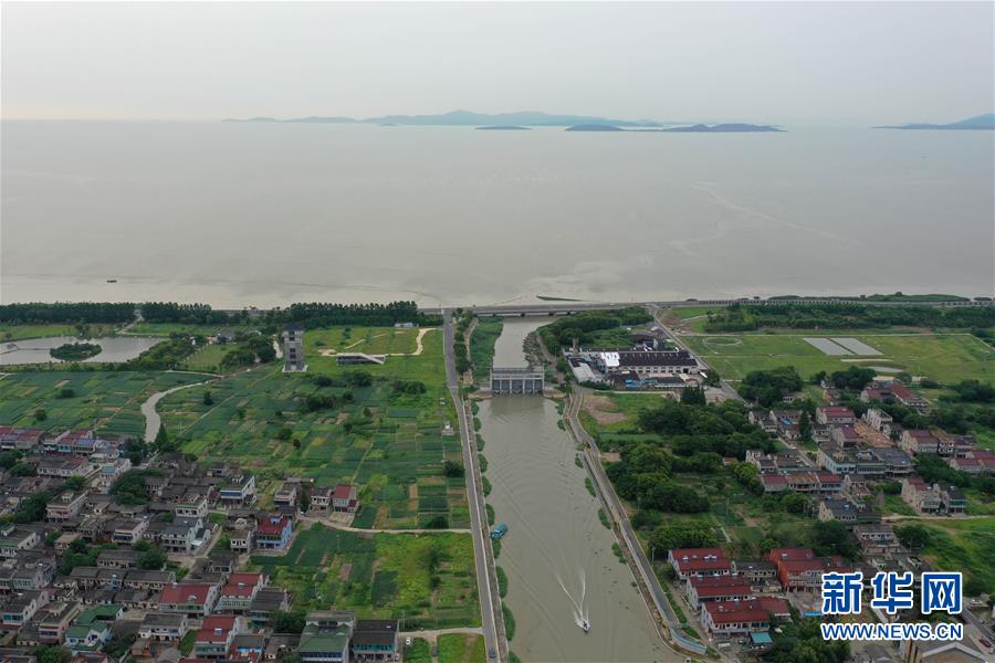 7月7日無(wú)人機(jī)拍攝的吳興高新區(qū)幻溇村連通太湖的水閘。太湖水位近期持續(xù)上漲。近日,位于浙江北部的湖州市遭遇多輪降雨,東部平原河網(wǎng)普遍超警戒水位,水庫(kù)山塘高位運(yùn)行。7月5日12時(shí)30分,湖州市人民政府防汛防旱指揮部將防汛應(yīng)急響應(yīng)提升至Ⅲ級(jí),要求各地密切監(jiān)測(cè)汛情,切實(shí)做好各項(xiàng)防范工作,確保安全度汛。新華社記者黃宗治攝