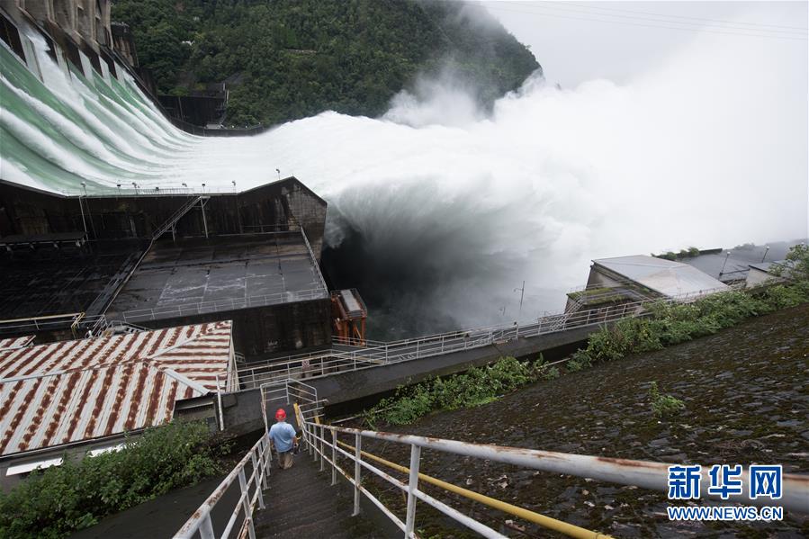 7月8日,新安江水庫開啟9孔泄洪,新安江電廠工作人員在壩區(qū)巡視。新華社記者翁忻旸攝