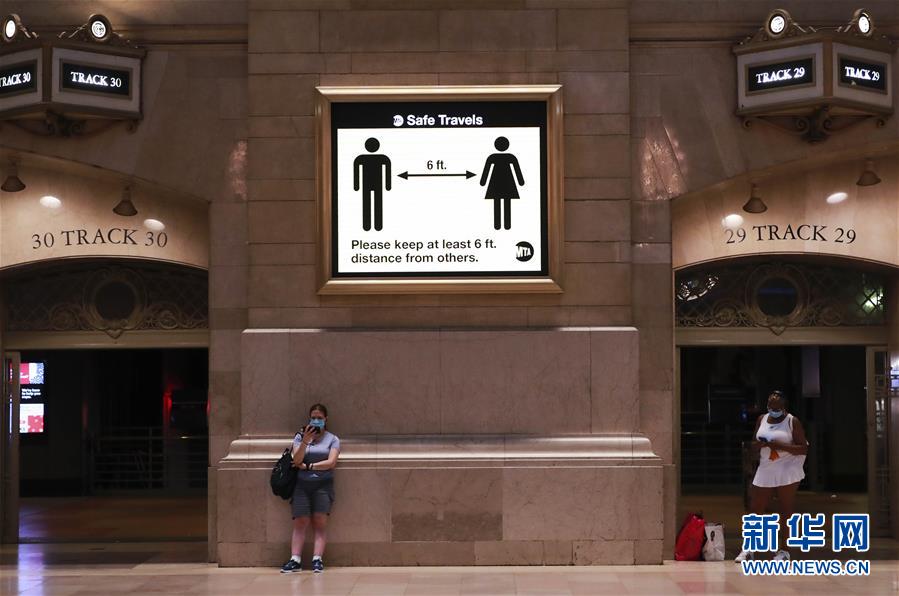 7月8日,人們在美國紐約中央車站內(nèi)等候乘車。美國約翰斯·霍普金斯大學(xué)8日發(fā)布的新冠疫情最新統(tǒng)計數(shù)據(jù)顯示,美國累計確診病例超過300萬例。數(shù)據(jù)顯示,截至美國東部時間8日11時34分(北京時間23時34分),美國累計確診病例3016515例,累計死亡病例131594例。新華社記者王迎攝