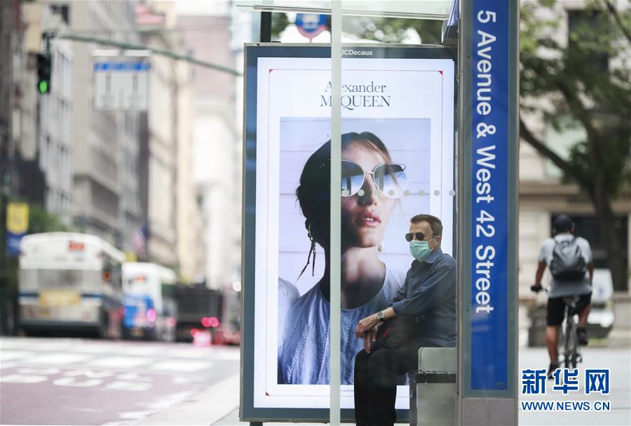 7月8日,一名男子在紐約第五大道的公交車站等車。美國約翰斯·霍普金斯大學(xué)8日發(fā)布的新冠疫情最新統(tǒng)計數(shù)據(jù)顯示,美國累計確診病例超過300萬例。數(shù)據(jù)顯示,截至美國東部時間8日11時34分(北京時間23時34分),美國累計確診病例3016515例,累計死亡病例131594例。新華社記者王迎攝