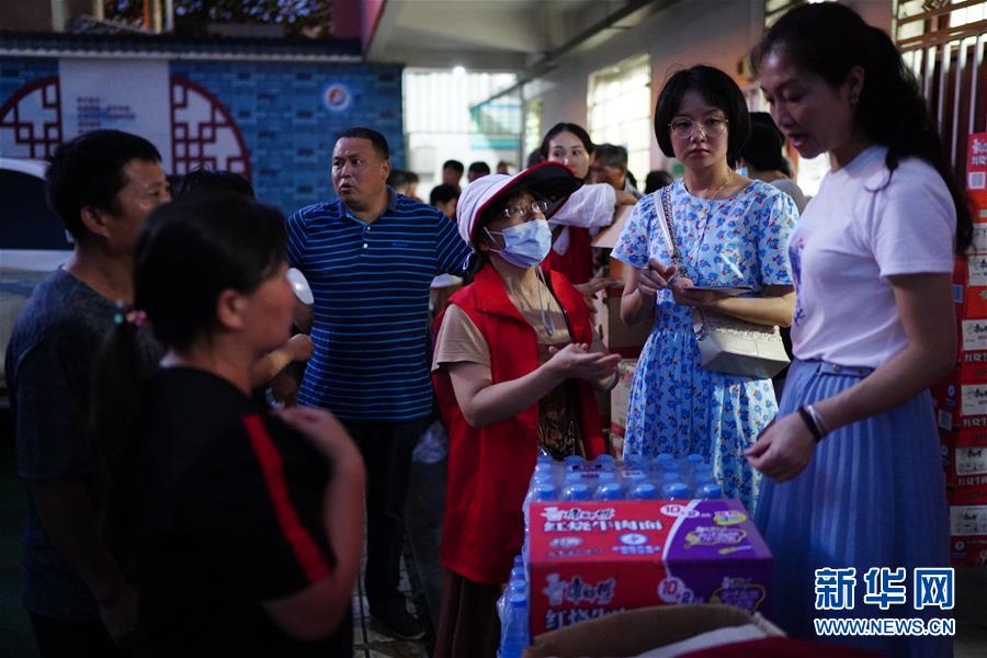 7月9日,村民在領(lǐng)取物資。當(dāng)日,江西鄱陽(yáng)縣鄱陽(yáng)鎮(zhèn)因洪水受災(zāi)的村民被轉(zhuǎn)移到多個(gè)集中安置點(diǎn)。在鄱陽(yáng)縣五一中心學(xué)校安置點(diǎn),志愿者和工作人員接到任務(wù)后不到十小時(shí)內(nèi),為被轉(zhuǎn)移村民布置了28間教室,供519人安頓,并為村民發(fā)放褥子、床單、枕頭、盒飯、飲用水等物資。新華社記者周密攝