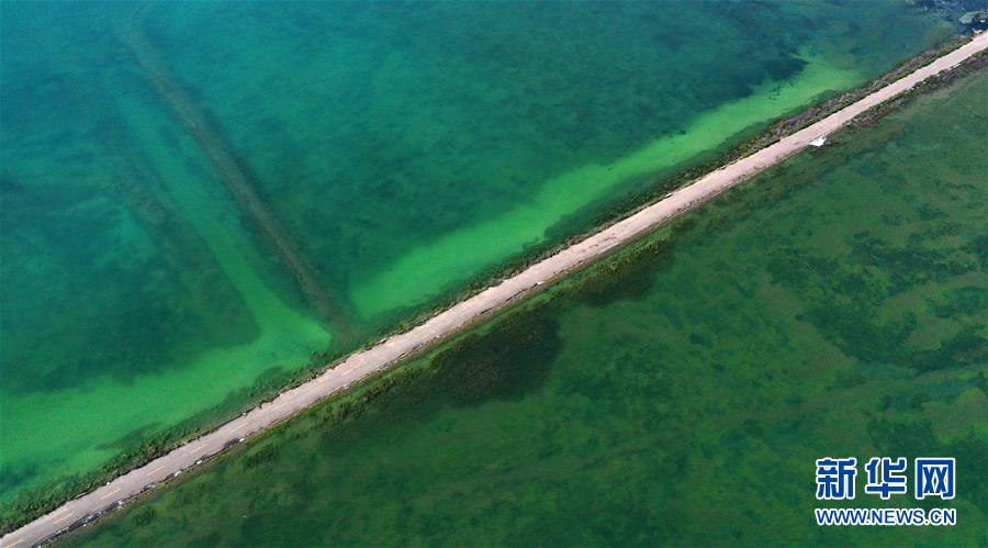 7月10日拍攝的青海湖風(fēng)光(無人機照片)。盛夏時節(jié),被譽為“中國最美湖泊”的青海湖畔景色宜人,藍天、白云、湖水與草原組成一幅壯美的畫卷。新華社記者 張宏祥 攝