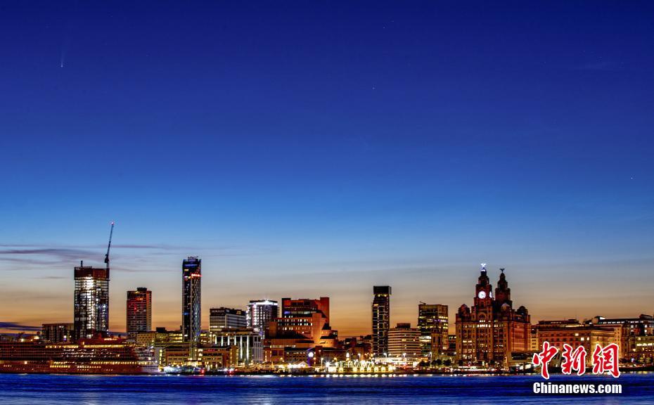當(dāng)?shù)貢r(shí)間7月12日,英國利物浦,清晨時(shí)分,NEOWISE彗星出現(xiàn)在空中。圖片來源:視覺中國