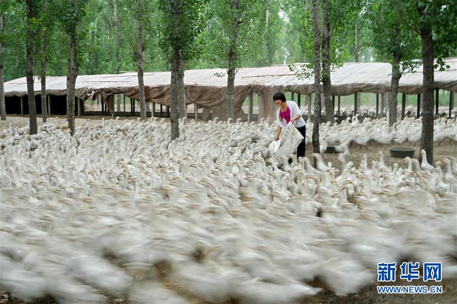 7月15日,河北省灤州市小馬莊鎮(zhèn)佘莊村村民在給鵝群投喂飼料。近年來,河北省灤州市小馬莊鎮(zhèn)充分利用林地資源,大力發(fā)展“林下經(jīng)濟(jì)”,引導(dǎo)農(nóng)民發(fā)展畜禽、食用菌等產(chǎn)業(yè),實現(xiàn)農(nóng)林資源的優(yōu)勢互補(bǔ)。目前,小馬莊鎮(zhèn)已發(fā)展林下經(jīng)濟(jì)1000余畝,帶動500余名村民實現(xiàn)增收。新華社記者牟宇攝