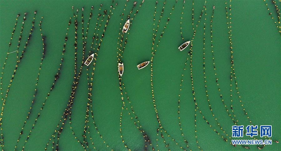 7月15日拍攝的山東省榮成市一處國家級海洋牧場(無人機(jī)照片)。新華社記者王凱攝