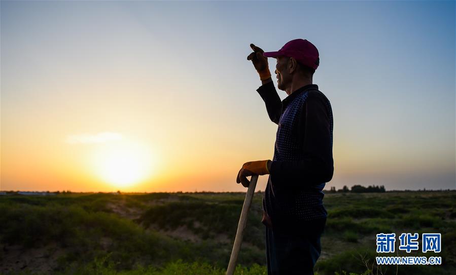 7月7日,孟和巴依爾站在改造后的荒灘上,遠(yuǎn)望騰格里沙漠。1993年,孟和巴依爾看到家鄉(xiāng)內(nèi)蒙古阿拉善盟阿拉善左旗超格圖呼熱蘇木由于過度放牧,草場嚴(yán)重退化,于是,他與家人在家鄉(xiāng)承包了4000多畝草場進(jìn)行治沙造林。27年過去,孟和巴依爾一家承包的草場已從曾經(jīng)生態(tài)脆弱的沙化土地變成了如今的茵茵綠洲。新華社記者連振攝
