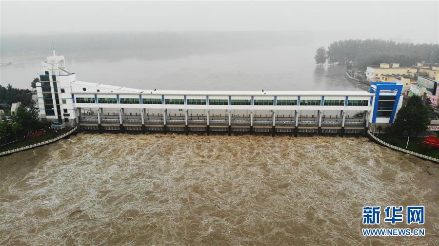 7月20日,洪水通過(guò)王家壩閘涌入蒙洼蓄洪區(qū)。當(dāng)日8時(shí)32分,淮河干流王家壩閘開(kāi)閘泄洪。受近期強(qiáng)降雨影響,淮河干流王家壩站水位19日快速上漲,7月20日6時(shí)36分水位漲至29.66米,超過(guò)保證水位0.36米?;春油跫覊伍l開(kāi)閘泄洪,蒙洼蓄洪區(qū)啟用。新華社記者黃博涵攝