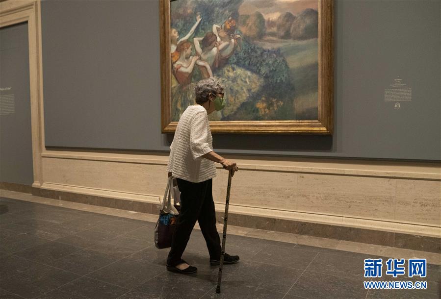 當(dāng)日,美國國家美術(shù)館西館部分展廳開始重新對(duì)公眾開放。觀眾需要在網(wǎng)站上提前預(yù)約,然后按照電子門票上規(guī)定的時(shí)間段參觀。受新冠疫情影響,美國國家美術(shù)館此前已關(guān)閉數(shù)月。