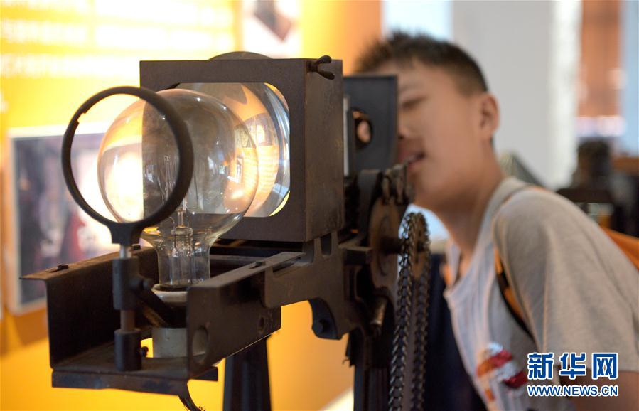 2019年8月29日,參觀者在西影電影藝術(shù)體驗(yàn)中心參觀展出的老式幻燈機(jī)。當(dāng)日,陜西省西安市西影電影藝術(shù)體驗(yàn)中心正式對(duì)外開(kāi)放。新華社記者劉瀟攝
