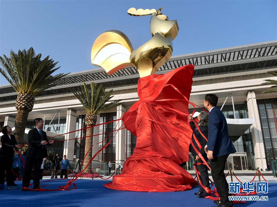 2019年11月19日,嘉賓為第28屆金雞百花電影節(jié)金雞雕塑揭幕。當日,第28屆金雞百花電影節(jié)金雞雕塑揭幕儀式在廈門海峽大劇院前廣場舉行。新華社記者姜克紅攝
