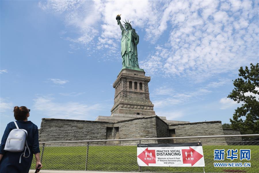 7月20日,參觀者在美國紐約自由島游覽。美國紐約市20日繼續(xù)推進經(jīng)濟重啟計劃,宣布開始進入解封新階段,進一步允許部分低風(fēng)險文娛活動重啟。自由女神像所在的自由島對公眾開放,但雕像內(nèi)部和博物館仍關(guān)閉。新華社記者王迎攝