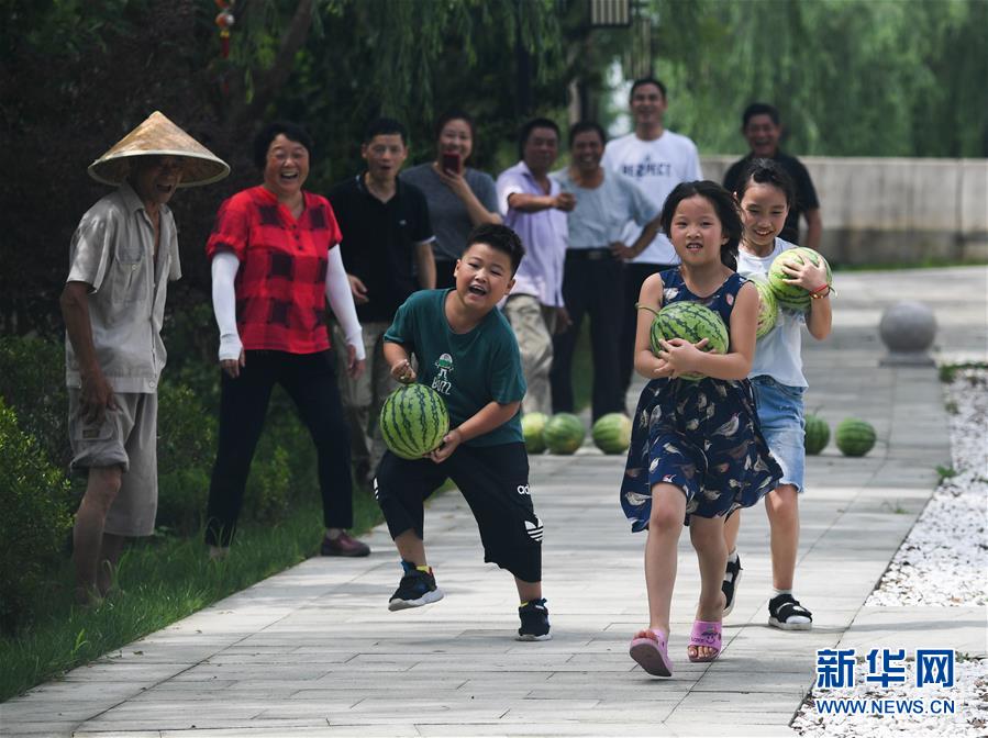 7月22日,廟兜村的孩子們在參加運(yùn)西瓜比賽。當(dāng)日是大暑節(jié)氣,浙江省湖州市吳興區(qū)織里鎮(zhèn)廟兜村舉行了趣味“賽西瓜”比賽,迎接這個“火熱”的節(jié)氣。廟兜村種植有500多畝西瓜,目前正值西瓜豐收的時節(jié),村民們用“賽西瓜”的形式,感受豐收的喜悅。新華社記者徐昱攝