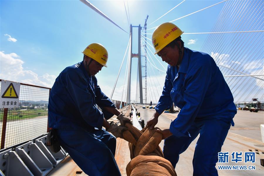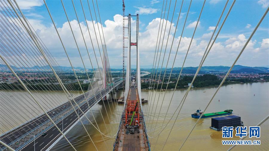 當(dāng)日,中鐵十一局承建的粵港澳大灣區(qū)基礎(chǔ)設(shè)施“硬聯(lián)通”重點工程——廣州南沙港鐵路跨西江特大斜拉橋完成最后一組斜拉索吊裝,大橋預(yù)計在7月底合龍。該橋位于廣東佛山市和江門市交界處,全長1117.5米。