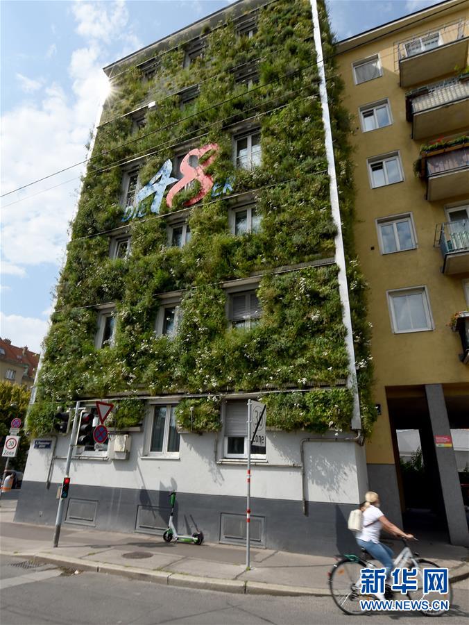 這是7月22日拍攝的奧地利維也納市政管理局廢物處理辦公總部(MA48)外景。奧地利首都維也納的市政管理局廢物處理辦公總部的外墻被種植的綠色植物覆蓋,成為了維也納市建設(shè)綠色城市、節(jié)能減排的“示例樓”。據(jù)介紹,這個(gè)外墻項(xiàng)目建立于2010年,每年在夏季為該建筑自然降溫、增加濕度,從而減少空調(diào)的使用,并可吸收二氧化碳。維也納市政府提倡市內(nèi)建筑建設(shè)綠色外墻,并提供資金支持。新華社記者郭晨攝