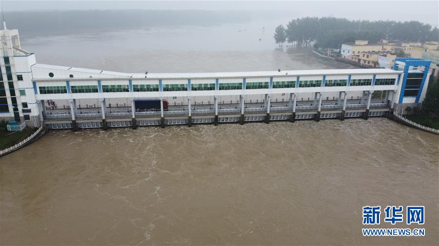這是7月23日在安徽省阜南縣拍攝的正在關閘的淮河王家壩閘(無人機照片)。當日13時,淮河干流王家壩閘關閘,停止向蒙洼蓄洪區(qū)泄洪。新華社記者張端攝