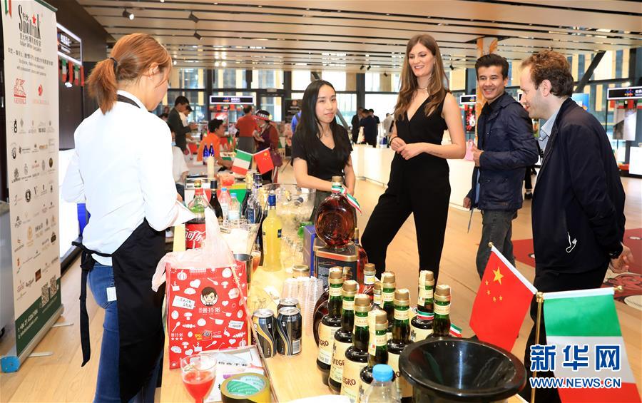 2020年5月8日,虹橋品匯國別文化節(jié)云游意大利主題展在上海虹橋進(jìn)口商品展示交易中心舉行,嘉賓在一家意大利酒類企業(yè)的展臺(tái)前駐足觀看。新華社記者 方喆 攝