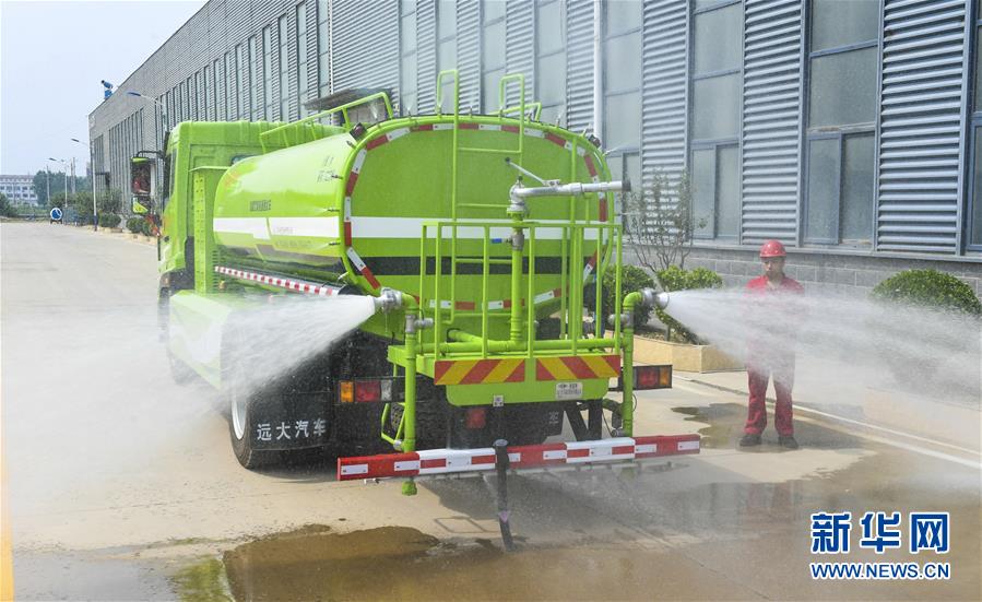 7月27日,河北景縣開(kāi)發(fā)區(qū)一家新能源汽車(chē)制造公司工人在對(duì)增程式新能源灑水車(chē)進(jìn)行性能校驗(yàn)。新華社記者 李曉果 攝