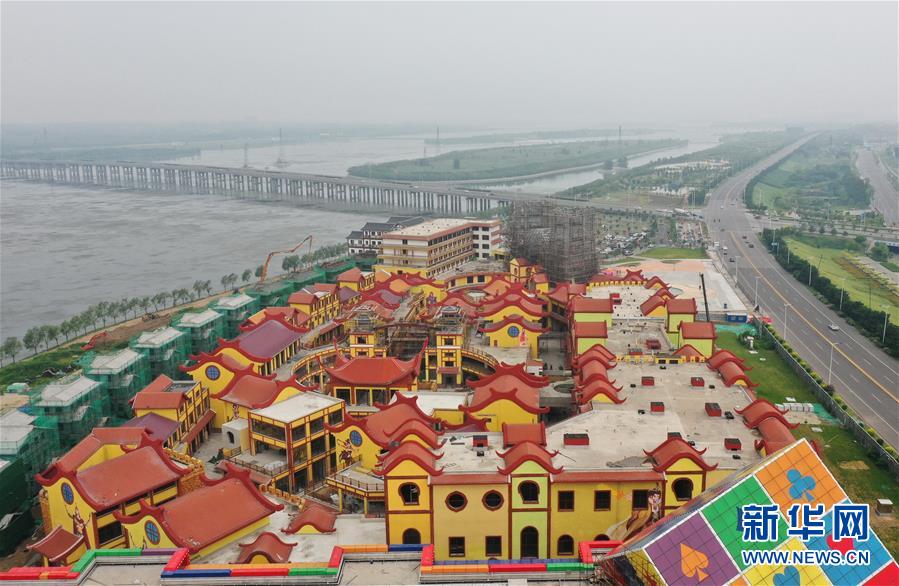 7月28日拍攝的建設(shè)中的遷安市中唐·天元谷文化旅游綜合體項目(無人機(jī)照片)。新華社記者楊世堯攝
