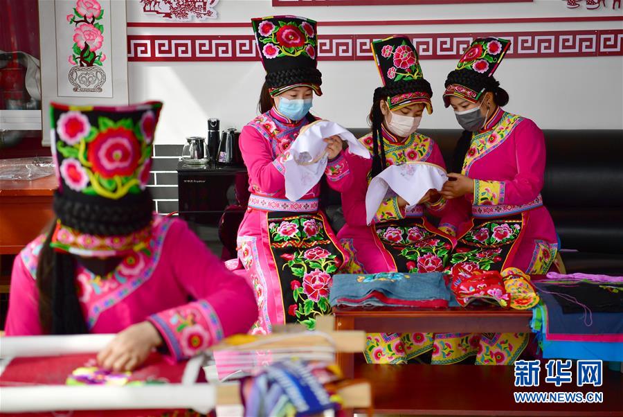 在陜西寧強(qiáng)縣大安鎮(zhèn)江林安置點(diǎn)一家羌族刺繡文化公司的傳習(xí)基地內(nèi),學(xué)員在進(jìn)行練習(xí)(3月13日攝)。陜南地區(qū)地處秦巴山區(qū),是陜西脫貧攻堅(jiān)的主戰(zhàn)場。近年來,陜南各縣區(qū)因地制宜、精準(zhǔn)施策,通過發(fā)展社區(qū)工廠、特色種植、旅游扶貧、技能培訓(xùn)、電商帶貨等措施,促進(jìn)多種產(chǎn)業(yè)發(fā)展,助力農(nóng)民增收。新華社記者邵瑞攝