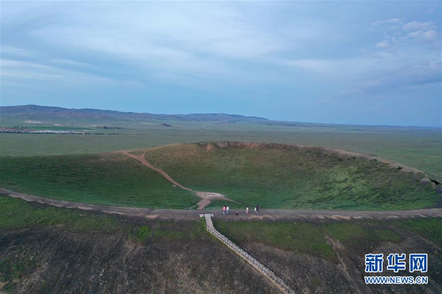 這是烏蘭哈達(dá)火山群的一處火山口(7月29日攝,無人機(jī)照片)。
