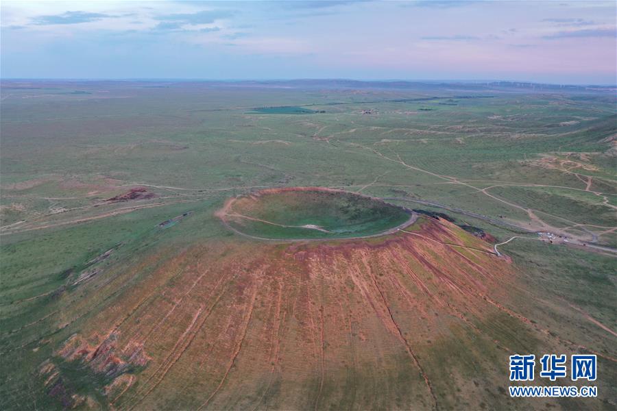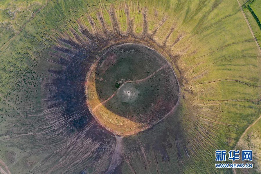 這是烏蘭哈達(dá)火山群的一處火山口(7月29日攝,無人機(jī)照片)。新華社記者徐欽攝