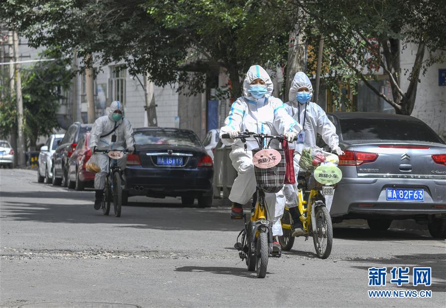 8月3日,在烏魯木齊天山區(qū)西河壩前街社區(qū),社區(qū)工作人員騎著”跑腿小車“為居民送去生活物品。新疆烏魯木齊市天山區(qū)西河壩前街社區(qū)主次干道較多,院落分布分散。新冠肺炎疫情防控期間,社區(qū)整合現(xiàn)有資源,將暫時閑置的自行車、電動車集中起來,貼上“跑腿小車”標識,成立便民服務(wù)隊,社區(qū)工作人員通過“跑腿小車”可將居民網(wǎng)絡(luò)定制的“菜袋子”“藥盒子”快速送達,給居民帶來方便。新華社記者趙戈攝