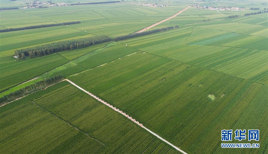 吉林省梨樹縣國家百萬畝綠色食品原料(玉米)標(biāo)準(zhǔn)化生產(chǎn)基地核心示范區(qū)(7月23日攝,無人機(jī)照片)。新華社記者許暢攝