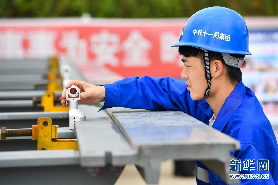 8月5日,中鐵十一局技術人員在清遠磁浮軌排基地對試驗梁軌排進行精調。目前,廣東首條中低速磁浮線——清遠磁浮旅游專線項目建設有序推進。廣東清遠磁浮旅游專線項目全長約38公里,分兩期建設。首期全長8.014公里,將在9月份開始鋪軌,預計在2020年底實現(xiàn)主體工程全面完工。新華社記者劉大偉攝
