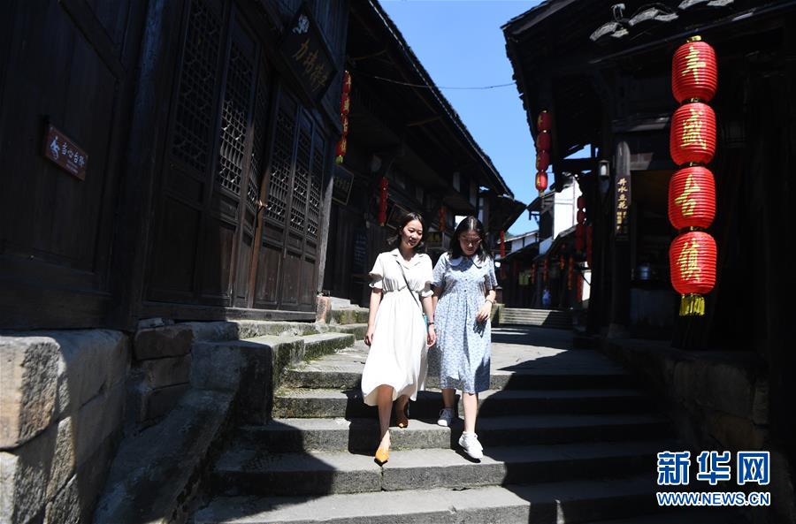 8月5日,游客在豐盛古鎮(zhèn)游覽。近年來,重慶市巴南區(qū)引入社會(huì)資本,按照“修舊如舊、適度開發(fā)”的原則對豐盛古鎮(zhèn)進(jìn)行保護(hù)性修繕和景區(qū)化打造,讓古鎮(zhèn)在保留原有歷史人文風(fēng)貌的同時(shí),煥發(fā)新活力。新華社記者王全超攝