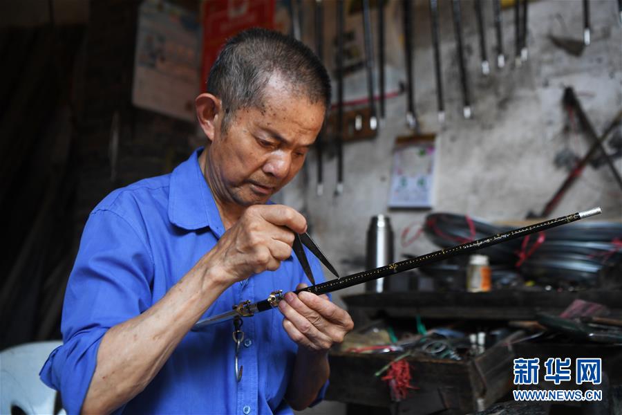 8月5日,豐盛古鎮(zhèn)經(jīng)營(yíng)秤桿店的居民王澤喜在制作秤桿。近年來(lái),重慶市巴南區(qū)引入社會(huì)資本,按照“修舊如舊、適度開(kāi)發(fā)”的原則對(duì)豐盛古鎮(zhèn)進(jìn)行保護(hù)性修繕和景區(qū)化打造,讓古鎮(zhèn)在保留原有歷史人文風(fēng)貌的同時(shí),煥發(fā)新活力。新華社記者王全超攝