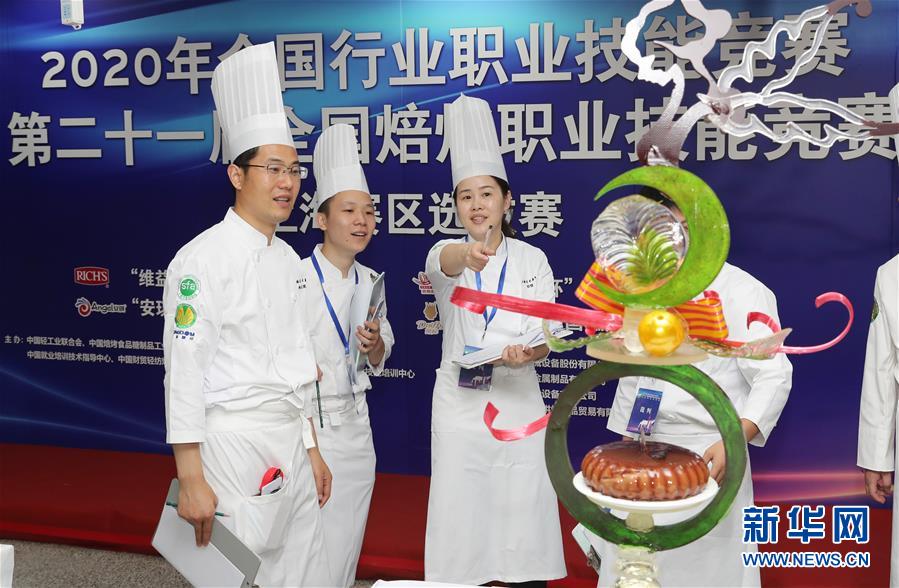 8月5日,評委在作品展示區(qū)為選手的作品打分。當(dāng)日,第二十一屆全國焙烤職業(yè)技能競賽上海賽區(qū)選拔賽,在上海市現(xiàn)代食品職業(yè)技能培訓(xùn)中心舉行,來自上海、江蘇、浙江等地的近60名焙烤行業(yè)技師,在藝術(shù)面包、傳統(tǒng)糕點、糖藝和藝術(shù)巧克力等項目中進行比拼,在充滿焙烤香氣的賽場上展現(xiàn)技藝。新華社記者方喆攝