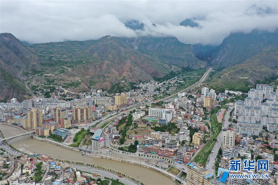 這是7月14日拍攝的舟曲縣老縣城(無(wú)人機(jī)照片)。新華社記者杜哲宇攝
