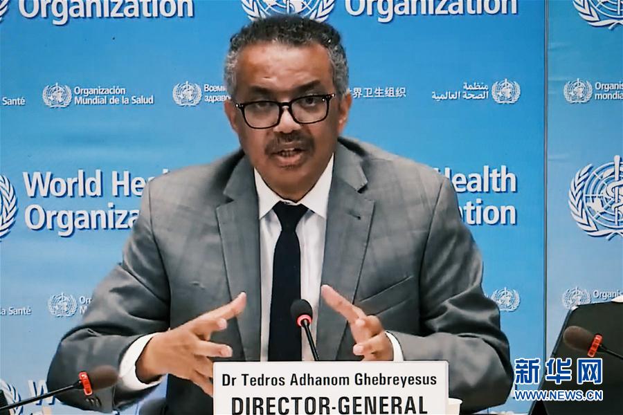 這是8月6日在比利時布魯塞爾拍攝的世界衛(wèi)生組織總干事譚德塞在瑞士日內瓦出席線上記者會的視頻畫面。世界衛(wèi)生組織6日最新數(shù)據(jù)顯示,全球新冠死亡病例累計已超70萬例。新華社記者張鋮攝