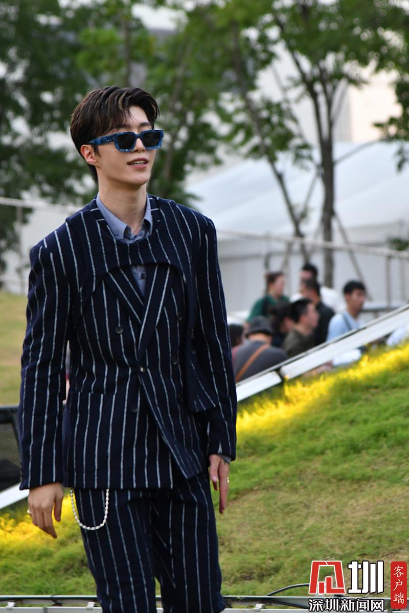 2020年8月6日,上海,LV 2021春夏男裝大秀,吳亦凡、迪麗熱巴、劉昊然、朱一龍、范丞丞、歐陽娜娜、李汶翰、鐘楚曦、萬茜、王子異、虞書欣、白敬亭、奚夢瑤、劉暢等明星亮相,吳亦凡身穿油畫短袖襯衫搭配長褲,帥氣似大佬。范丞丞身穿藍色條紋西裝搭配墨鏡貴氣十足。