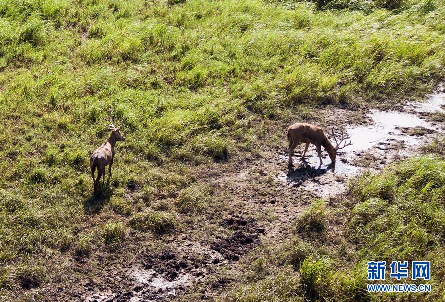 這是8月7日在東洞庭湖麋鹿和鳥類救治避難中心拍攝的麋鹿(無人機(jī)照片)。位于湖南省岳陽市的東洞庭湖麋鹿和鳥類救治避難中心成立于2016年9月,占地400余畝,中心自建成后就承擔(dān)起東洞庭湖區(qū)域全部麋鹿的救援、醫(yī)治、康復(fù)和喂養(yǎng)任務(wù)。目前該中心共有14只麋鹿正在接受救助。新華社記者李鑫攝