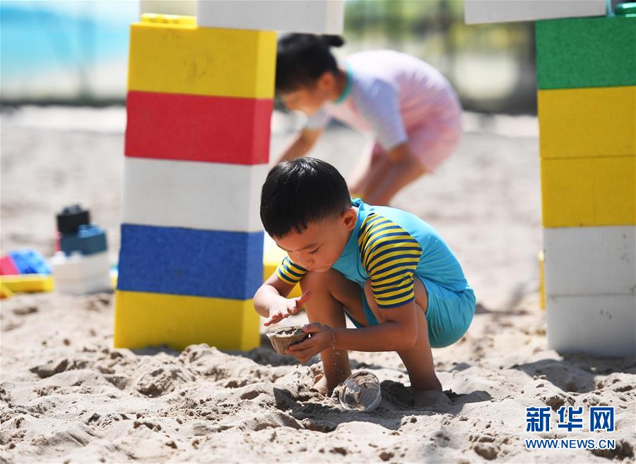 8月9日,小朋友在南宮五洲植物樂(lè)園戶外戲水區(qū)旁的沙灘上玩沙子。近期,在做好新冠肺炎疫情防控的前提下,位于北京市豐臺(tái)區(qū)的南宮五洲植物樂(lè)園戶外戲水區(qū)對(duì)外開(kāi)放。市民在戲水的同時(shí)還可以在沙灘上畫(huà)沙畫(huà)、在新游樂(lè)項(xiàng)目“叢林網(wǎng)繩”里穿梭跳躍,豐富暑期生活。新華社記者任超攝。