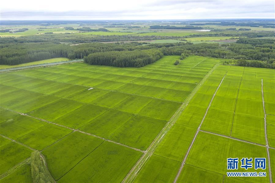 8月11日在撫遠(yuǎn)市拍攝的稻田(無人機(jī)照片)。時下,“華夏東極”黑龍江省撫遠(yuǎn)市的水稻長勢良好,蒼翠的稻田一望無際,猶如綠毯鋪在大地上。新華社記者謝劍飛攝。