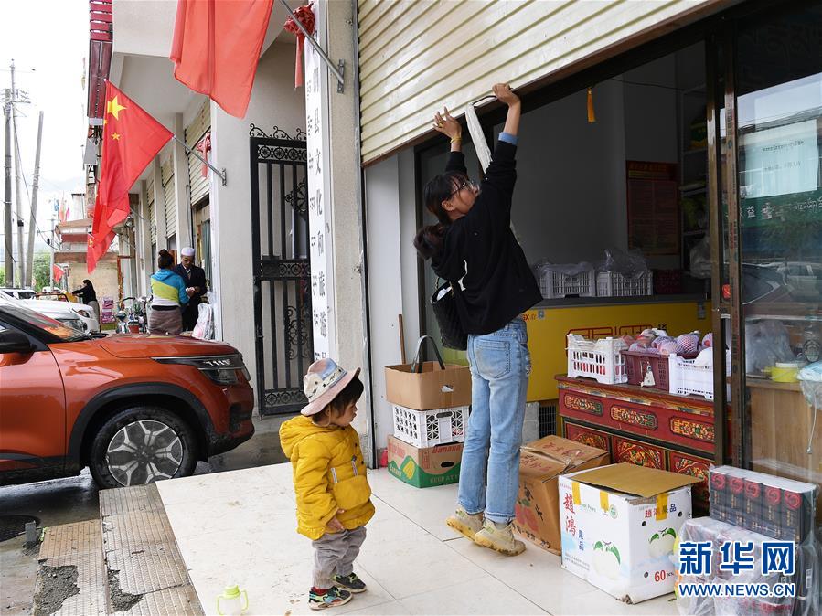 格桑旺姆推開(kāi)蔬菜店的卷閘門準(zhǔn)備營(yíng)業(yè)(8月3日攝)。新華社記者 李賀 攝