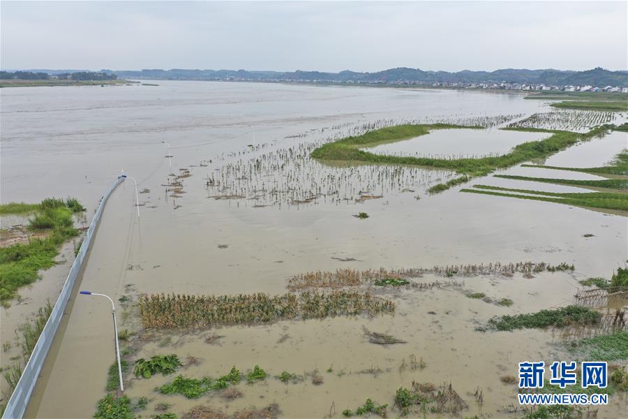 8月12日,重慶市潼南區(qū)桂林街道雙壩村蔬菜基地,部分低洼地帶的農(nóng)作物被洪水淹沒(無人機照片)。受強降雨影響,涪江潼南段迎來過境洪水。新華社記者 黃偉 攝