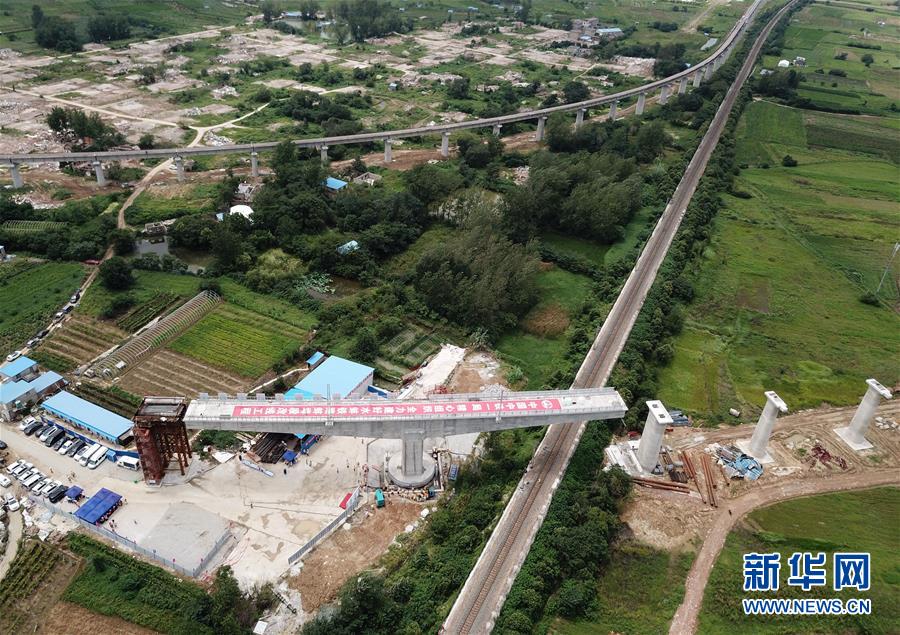這是8月12日拍攝的水蚌鐵路蚌埠段改線工程?hào)|站疏解線特大橋跨越京滬鐵路上行線轉(zhuǎn)體梁轉(zhuǎn)體施工現(xiàn)場(無人機(jī)照片)。當(dāng)日,由中鐵一局承建的水蚌鐵路蚌埠段改線工程?hào)|站疏解線特大橋跨越京滬鐵路上行線64米T構(gòu)轉(zhuǎn)體梁成功實(shí)現(xiàn)轉(zhuǎn)體。新華社記者 劉軍喜 攝
