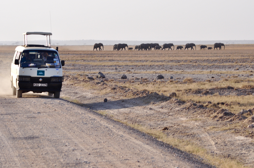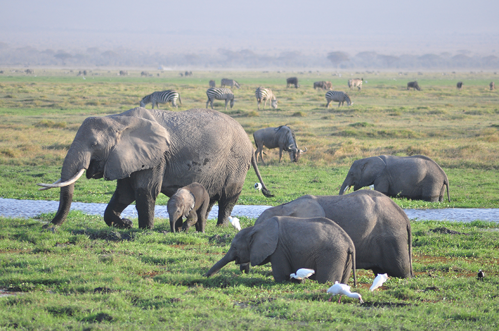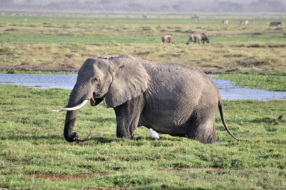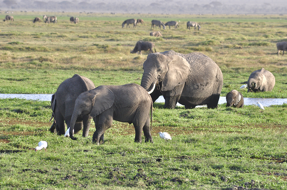 肯尼亞?wèn)|南部,與坦桑尼亞接壤的安博賽利國(guó)家公園,距內(nèi)羅畢240公里,因水草豐美而成為野生非洲大象的樂(lè)園。