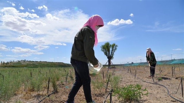 5月28日,內(nèi)蒙古巴彥淖爾市臨河區(qū)新華鎮(zhèn)新樂村村民在田間勞作。