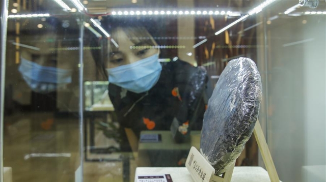 2020年5月18日,參觀者在南京博物院觀看展品。