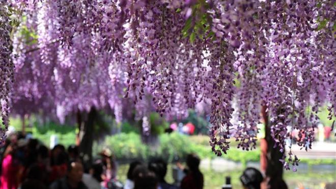 近日,上海嘉定紫藤園百余棵紫藤進(jìn)入盛放期,吸引眾多游客前來(lái)觀賞。