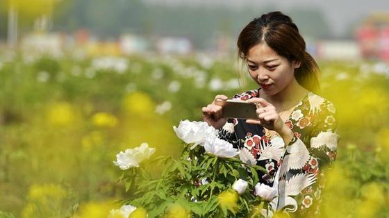 4月24日,游客在河北省沙河市興固村牡丹花田里拍照。近日,河北省沙河市興固村牡丹盛開(kāi),吸引眾多游客前來(lái)觀賞。