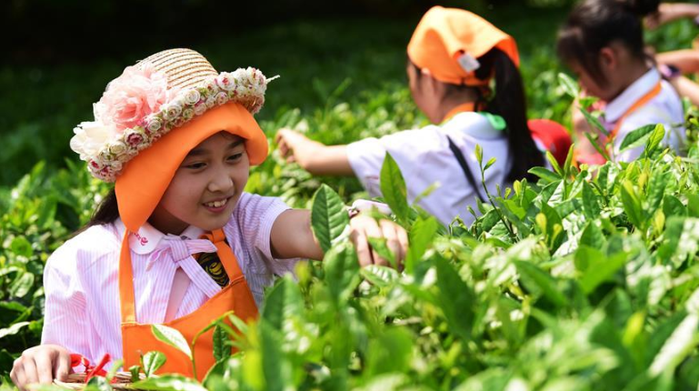 當(dāng)日,來自重慶市巴南區(qū)的300余名小學(xué)生來到位于巴南白象山的定心茶園,體驗(yàn)茶葉采摘、制作,學(xué)習(xí)茶文化禮儀。